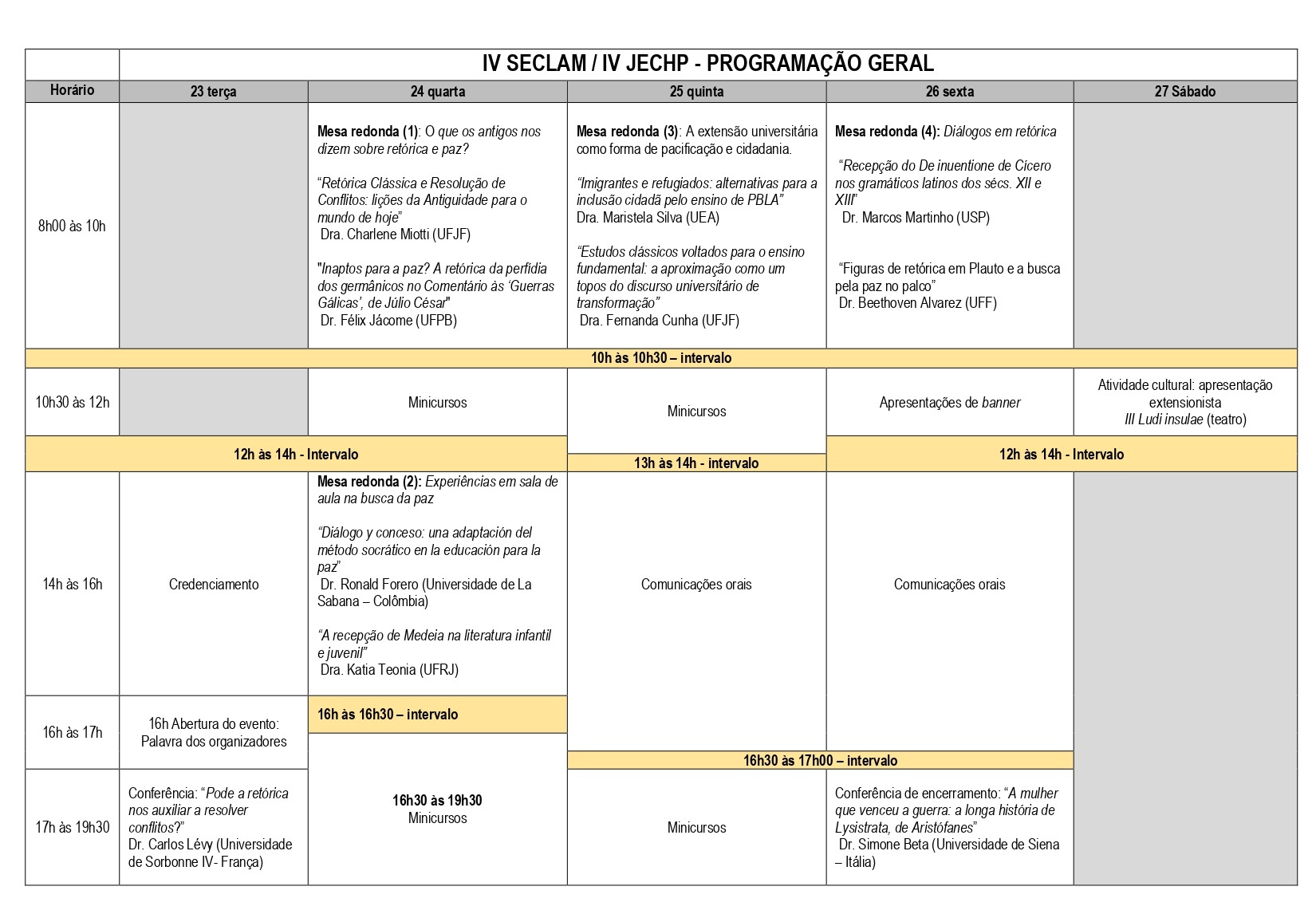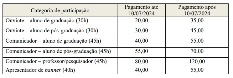 As inscrições serão aceitas nas modalidades de ouvinte e apresentação de trabalhos.